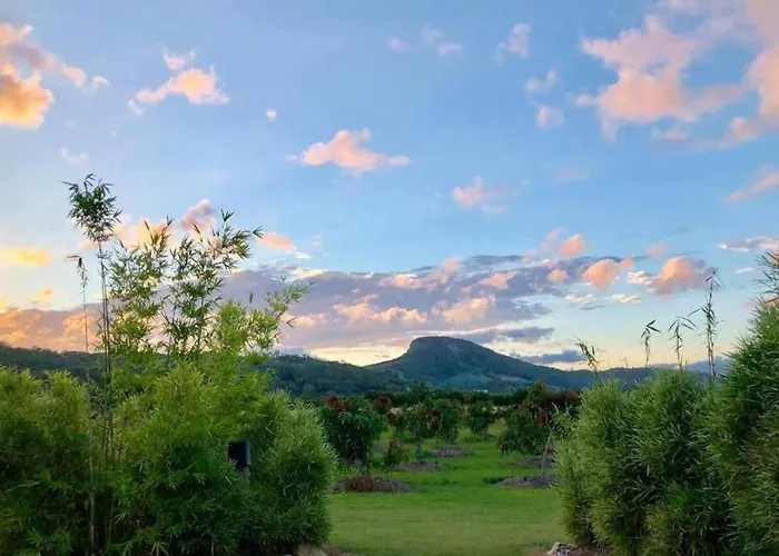Located approximately 10 minutes by car from Mt Ninderry walking track, the 2-bedroom Orchard Cottage - Modern Australian Sunshine Coast Holiday Cottage On Organic Farm Nr Beach gives access to various tourist sites in the vicinity. Guests can enjoy horse riding, bowling, and mini golf at this accommodation, located within a 5-km distance of Blast Aqua Park Coolum.